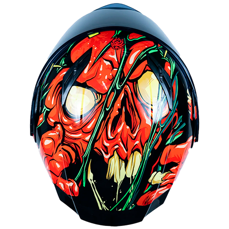 El CASCO KOV ESTELAR ZOMBIE ROJO XL es un casco de estética audaz para motociclistas que buscan un look impactante en talla extragrande. Su diseño temático Zombie Estelar, combinado con un rojo intenso, destaca en cualquier salida y evento.