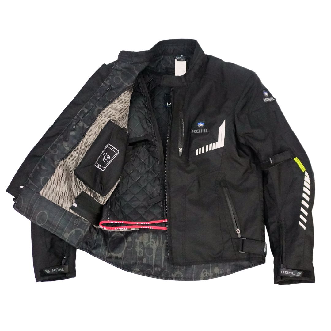 La CHAMARRA DEPORTIVA KOHL NEGRO M es una chaqueta de moto pensada para el usuario urbano y para quienes disfrutan de salidas cortas por carretera, fusionando protección certificada con confort diario.