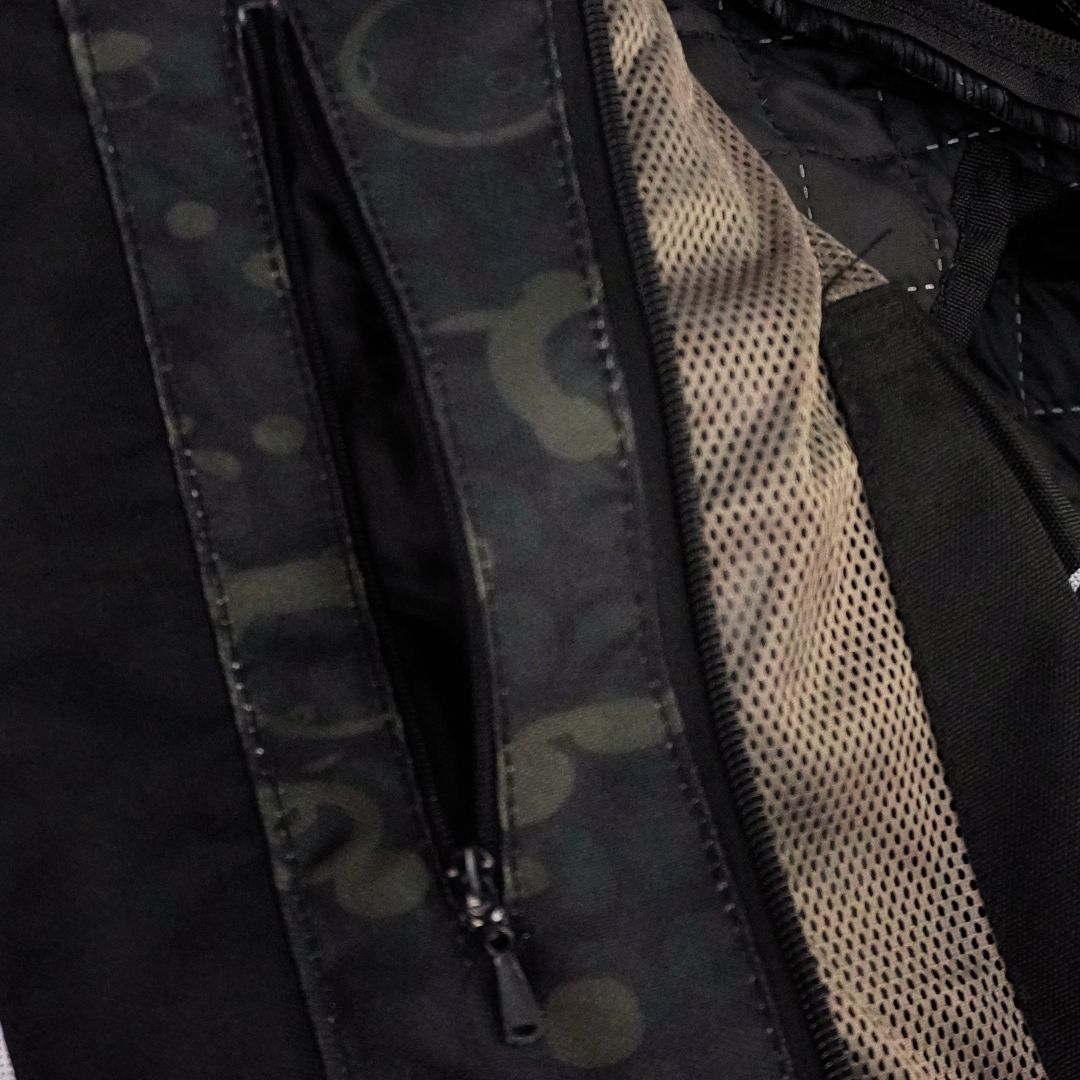 - Protección CE por prenda: defensas en hombros y codos certificadas CE que se ajustan sin limitar la movilidad.